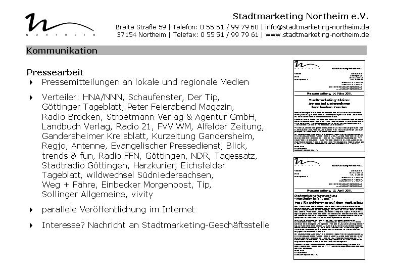 | Aktuelle Pr�sentation des Stadtmarketing Northeim e.V. |